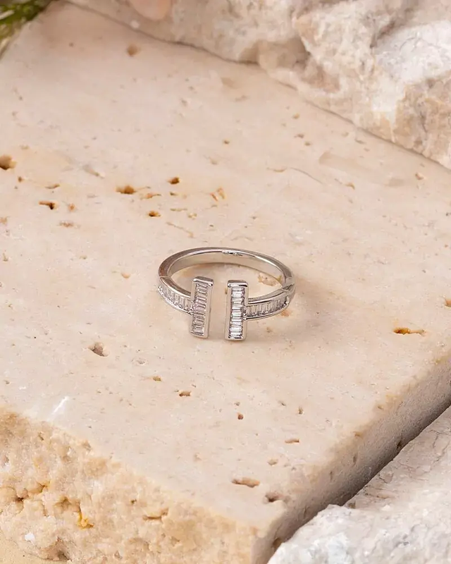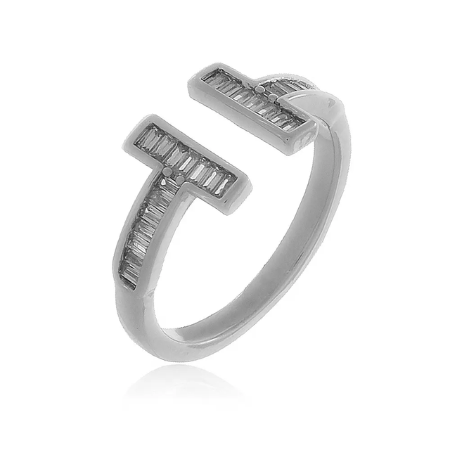 Anel em H com Zircônia Baguete Ajustável N.16 - Ródio