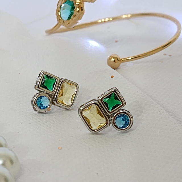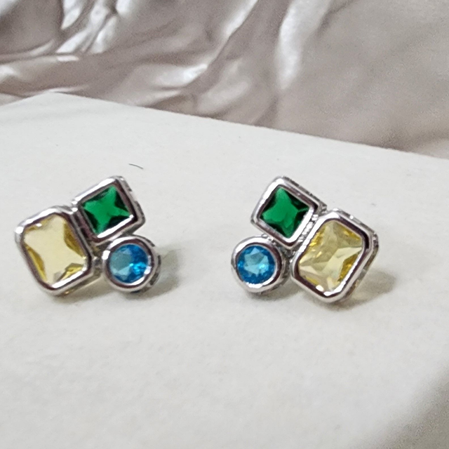 Brinco Quadrado com Pedras Coloridas - Ródio