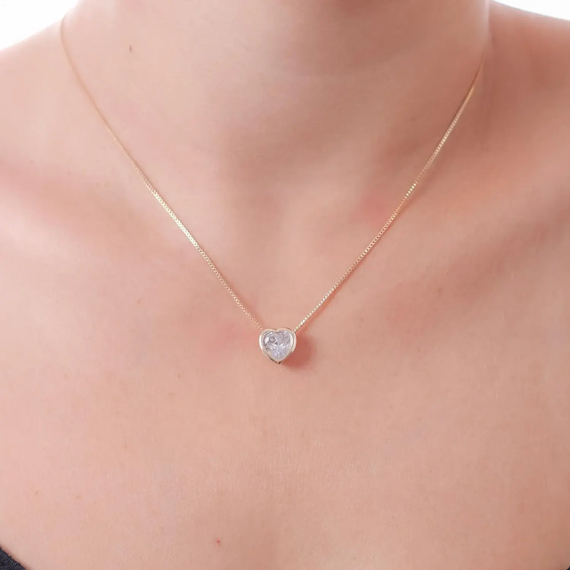 Colar Coração de Zircônia Cristal 40cm+5cm - Ouro