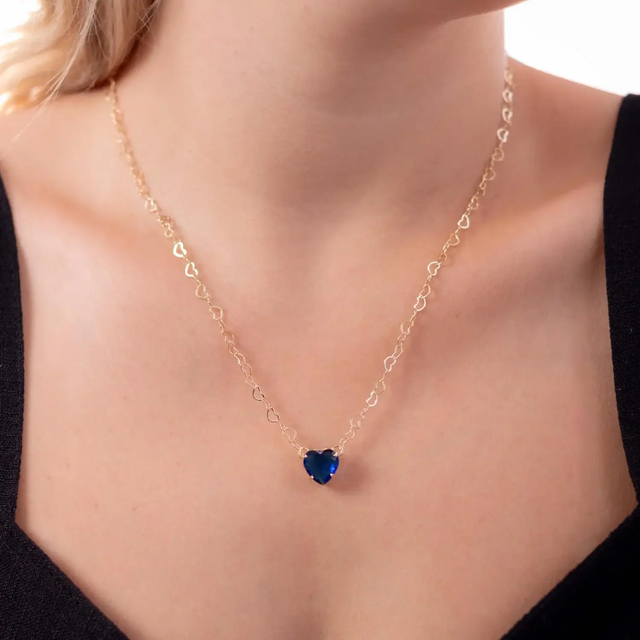 Colar Elos de Corações + Ping Coração Rosa - Ouro