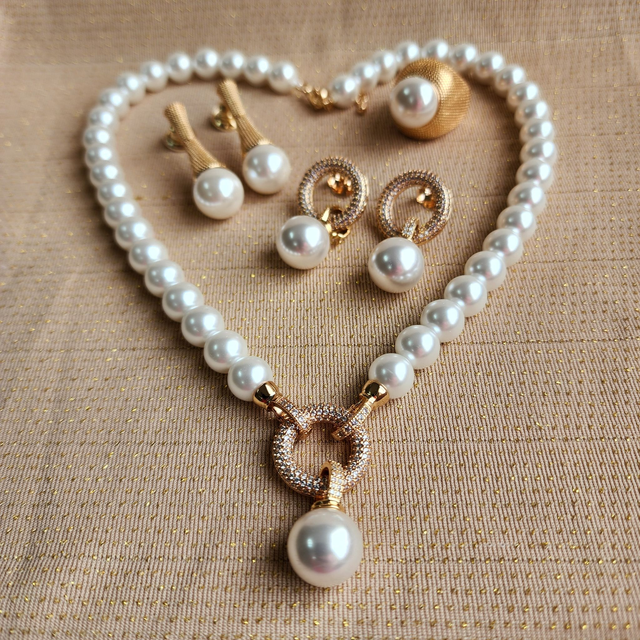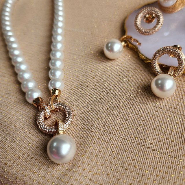 Colar Perolas com pingente Cravejado Removível - Ouro